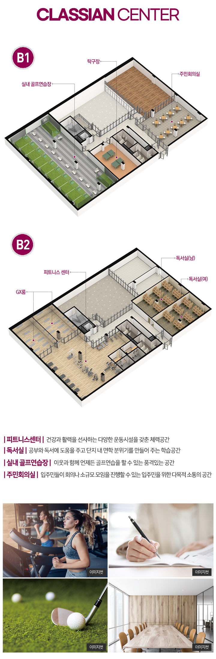 ※ 상기 커뮤니티 아이소 CG는 소비자의 이해를 돕기 위한 것으로 형태 및 구성은 인·허가 과정이나 실제 시공 시 현장 여건 등에 따라 일부 변경될 수 있습니다. ※ 상기 커뮤니티는 기본시설 및 기본 마감재는 제공되며 내부 집기류 및 이동가구 등은 제외되며, 상기 커뮤니티 시설의 운영방식은 향후 입주자대표회의에서 결정됩니다. ※ 주민운동시설 및 휘트니스센터 내부에 표현된 운동시설의 종류 및 개수, 탈의실 및 샤워실, 바닥 및 벽체마감 등은 소비자의 이해를 돕기 위한 것으로 실제 시공시 차이가 있을 수 있습니다. ※ 상기 이미지는 소비자의 이해를 돕기위한 것으로 실제와 다를 수 있습니다
